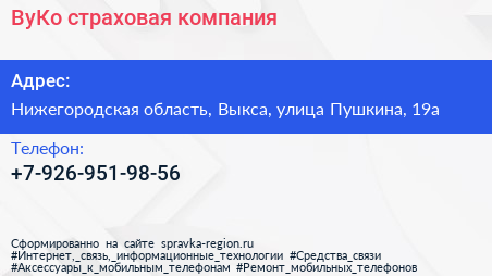 ВуКо, страховая компания по адресу Нижегородская область, Выкса, улица Пушкина, 19а в дальнейшем Организация, размещена в следующих категориях: