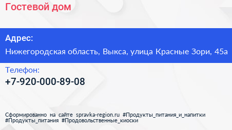 Гостевой дом по адресу Нижегородская область, Выкса, улица Красные Зори, 45а в дальнейшем Организация, размещена в следующих категориях:
