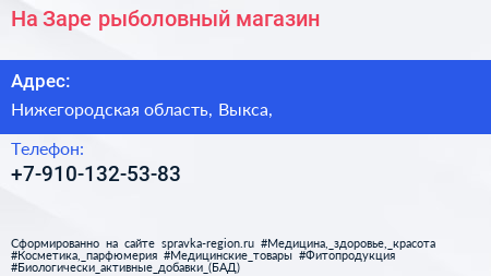 На Заре, рыболовный магазин по адресу Нижегородская область, Выкса, в дальнейшем Организация, размещена в следующих категориях: