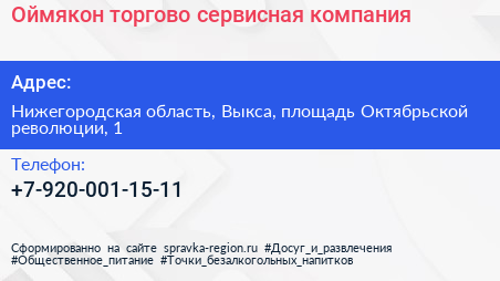 Оймякон, торгово-сервисная компания по адресу Нижегородская область, Выкса, площадь Октябрьской революции, 1 в дальнейшем Организация, размещена в следующих категориях: