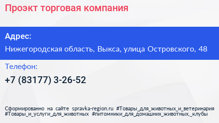 Проэкт, торговая компания по адресу Нижегородская область, Выкса, улица Островского, 48 в дальнейшем Организация, размещена в следующих категориях: