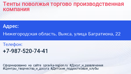 Тенты поволжья, торгово-производственная компания по адресу Нижегородская область, Выкса, улица Багратиона, 22 в дальнейшем Организация, размещена в следующих категориях: