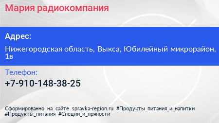 Мария, радиокомпания по адресу Нижегородская область, Выкса, Юбилейный микрорайон, 1в в дальнейшем Организация, размещена в следующих категориях: