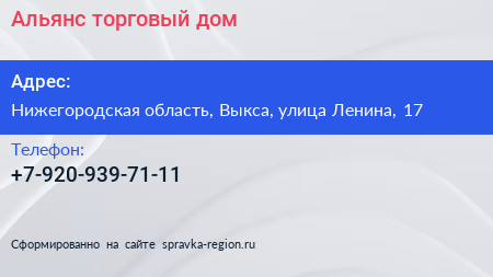 Альянс, торговый дом по адресу Нижегородская область, Выкса, улица Ленина, 17 в дальнейшем Организация, размещена в следующих категориях: