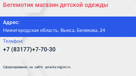 Бегемотик, магазин детской одежды по адресу Нижегородская область, Выкса, Белякова, 24 в дальнейшем Организация, размещена в следующих категориях: