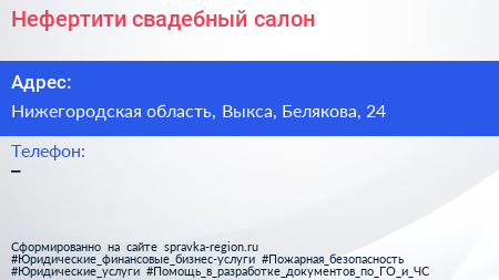 Нефертити, свадебный салон по адресу Нижегородская область, Выкса, Белякова, 24 в дальнейшем Организация, размещена в следующих категориях: