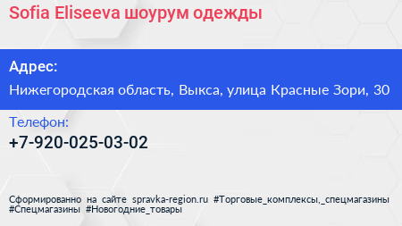 Sofia Eliseeva, шоурум одежды по адресу Нижегородская область, Выкса, улица Красные Зори, 30 в дальнейшем Организация, размещена в следующих категориях: