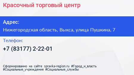 Красочный, торговый центр по адресу Нижегородская область, Выкса, улица Пушкина, 7 в дальнейшем Организация, размещена в следующих категориях:
