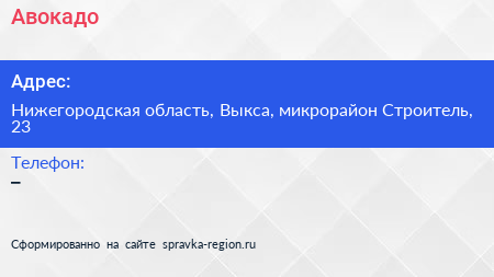 Авокадо по адресу Нижегородская область, Выкса, микрорайон Строитель, 23 в дальнейшем Организация, размещена в следующих категориях: