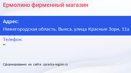 Ермолино, фирменный магазин по адресу Нижегородская область, Выкса, улица Красные Зори, 11а в дальнейшем Организация, размещена в следующих категориях: