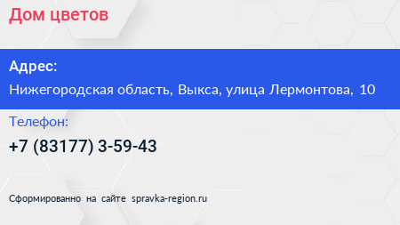 Дом цветов по адресу Нижегородская область, Выкса, улица Лермонтова, 10 в дальнейшем Организация, размещена в следующих категориях: