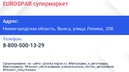 EUROSPAR, супермаркет по адресу Нижегородская область, Выкса, улица Ленина, 208 в дальнейшем Организация, размещена в следующих категориях: