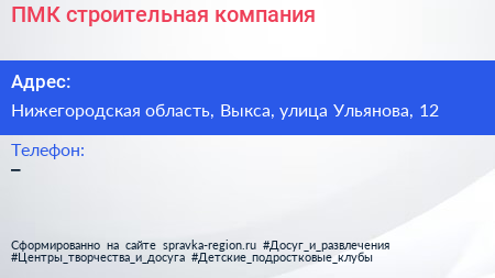 ПМК, строительная компания по адресу Нижегородская область, Выкса, улица Ульянова, 12 в дальнейшем Организация, размещена в следующих категориях: