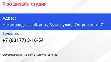Riso, дизайн студия по адресу Нижегородская область, Выкса, улица Островского, 71 в дальнейшем Организация, размещена в следующих категориях:
