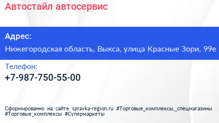Автостайл, автосервис по адресу Нижегородская область, Выкса, улица Красные Зори, 99е в дальнейшем Организация, размещена в следующих категориях: