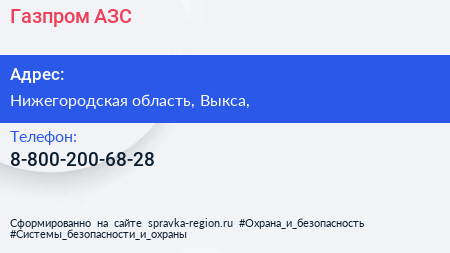 Газпром, АЗС по адресу Нижегородская область, Выкса, в дальнейшем Организация, размещена в следующих категориях: