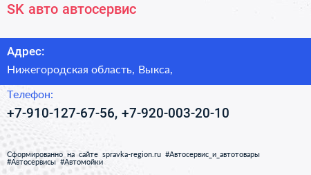 SK-авто, автосервис по адресу Нижегородская область, Выкса, в дальнейшем Организация, размещена в следующих категориях: