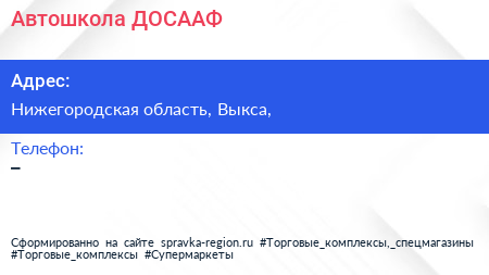 Автошкола ДОСААФ по адресу Нижегородская область, Выкса, в дальнейшем Организация, размещена в следующих категориях: