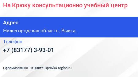 На Крюку, консультационно-учебный центр по адресу Нижегородская область, Выкса, в дальнейшем Организация, размещена в следующих категориях: