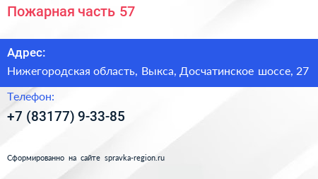 Пожарная часть №57 по адресу Нижегородская область, Выкса, Досчатинское шоссе, 27 в дальнейшем Организация, размещена в следующих категориях:
