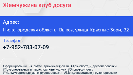 Жемчужина, клуб досуга по адресу Нижегородская область, Выкса, улица Красные Зори, 32 в дальнейшем Организация, размещена в следующих категориях:
