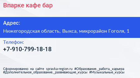Впарке, кафе-бар по адресу Нижегородская область, Выкса, микрорайон Гоголя, 1 в дальнейшем Организация, размещена в следующих категориях: