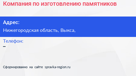 Компания по изготовлению памятников по адресу Нижегородская область, Выкса, в дальнейшем Организация, размещена в следующих категориях: