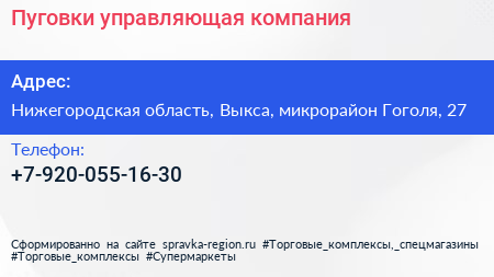 Пуговки, управляющая компания по адресу Нижегородская область, Выкса, микрорайон Гоголя, 27 в дальнейшем Организация, размещена в следующих категориях:
