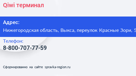 Qiwi, терминал по адресу Нижегородская область, Выкса, переулок Красные Зори, 5 в дальнейшем Организация, размещена в следующих категориях: