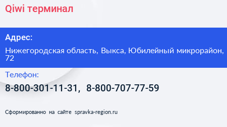 Qiwi, терминал по адресу Нижегородская область, Выкса, Юбилейный микрорайон, 72 в дальнейшем Организация, размещена в следующих категориях: