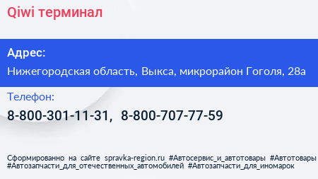 Qiwi, терминал по адресу Нижегородская область, Выкса, микрорайон Гоголя, 28а в дальнейшем Организация, размещена в следующих категориях:
