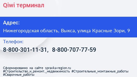 Qiwi, терминал по адресу Нижегородская область, Выкса, улица Красные Зори, 9 в дальнейшем Организация, размещена в следующих категориях: