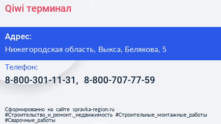 Qiwi, терминал по адресу Нижегородская область, Выкса, Белякова, 5 в дальнейшем Организация, размещена в следующих категориях: