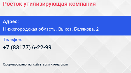 Росток, утилизирующая компания по адресу Нижегородская область, Выкса, Белякова, 2 в дальнейшем Организация, размещена в следующих категориях: