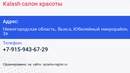 Kalash, салон красоты по адресу Нижегородская область, Выкса, Юбилейный микрорайон, 1в в дальнейшем Организация, размещена в следующих категориях: