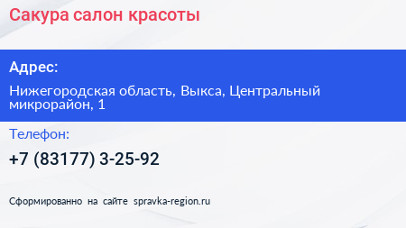 Сакура, салон красоты по адресу Нижегородская область, Выкса, Центральный микрорайон, 1 в дальнейшем Организация, размещена в следующих категориях: