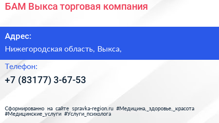 БАМ-Выкса, торговая компания по адресу Нижегородская область, Выкса, в дальнейшем Организация, размещена в следующих категориях: