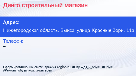 Динго, строительный магазин по адресу Нижегородская область, Выкса, улица Красные Зори, 11а в дальнейшем Организация, размещена в следующих категориях: