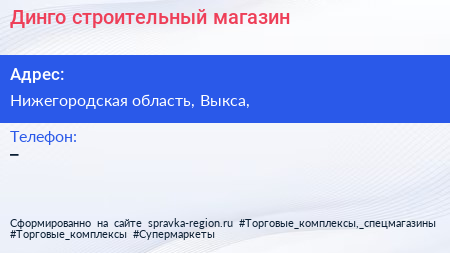 Динго, строительный магазин по адресу Нижегородская область, Выкса, в дальнейшем Организация, размещена в следующих категориях: