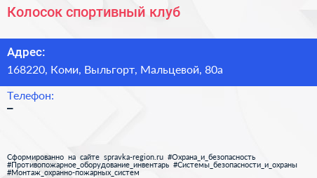 Колосок, спортивный клуб по адресу 168220, Коми, Выльгорт, Мальцевой, 80а в дальнейшем Организация, размещена в следующих категориях: