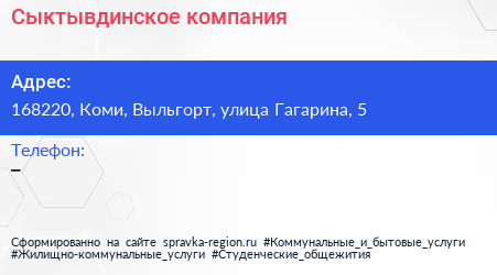 Сыктывдинское, компания по адресу 168220, Коми, Выльгорт, улица Гагарина, 5 в дальнейшем Организация, размещена в следующих категориях: