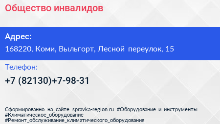 Общество инвалидов по адресу 168220, Коми, Выльгорт, Лесной переулок, 15 в дальнейшем Организация, размещена в следующих категориях: