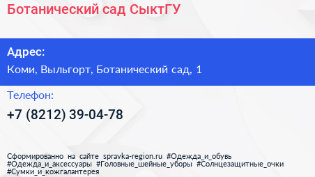 Ботанический сад, СыктГУ по адресу Коми, Выльгорт, Ботанический сад, 1 в дальнейшем Организация, размещена в следующих категориях: