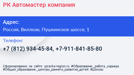 РК Автомастер, компания по адресу 1 с1, Пушкинское шоссе, Красное Село, Виллозское городское поселение, Ломоносовский район, Ленинградская область, Северо-Западный федеральный округ, 198301, Россия в дальнейшем Организация, размещена в следующих категориях: