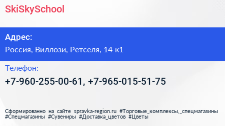 SkiSkySchool по адресу Туутари парк, Подгорная улица, СНТ Можайское, Карвала, Виллозское городское поселение, Ломоносовский район, Ленинградская область, Северо-Западный федеральный округ, Россия в дальнейшем Организация, размещена в следующих категориях:
