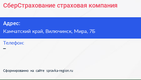 СберСтрахование, страховая компания по адресу Камчатский край, Вилючинск, Мира, 7Б в дальнейшем Организация, размещена в следующих категориях: