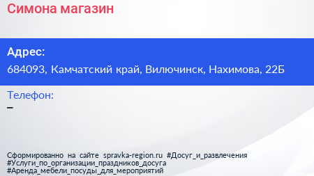 Симона, магазин по адресу 684093, Камчатский край, Вилючинск, Нахимова, 22Б в дальнейшем Организация, размещена в следующих категориях: