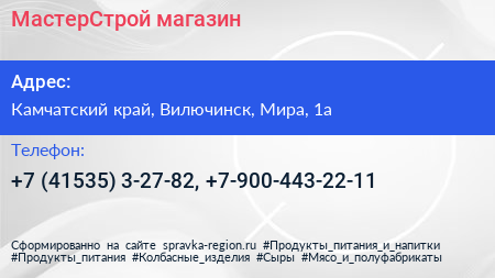 МастерСтрой, магазин по адресу Камчатский край, Вилючинск, Мира, 1а в дальнейшем Организация, размещена в следующих категориях: