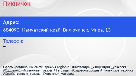 Пикничок по адресу 684090, Камчатский край, Вилючинск, Мира, 13 в дальнейшем Организация, размещена в следующих категориях: