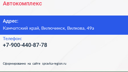 Автокомплекс по адресу Камчатский край, Вилючинск, Вилкова, 49а в дальнейшем Организация, размещена в следующих категориях: